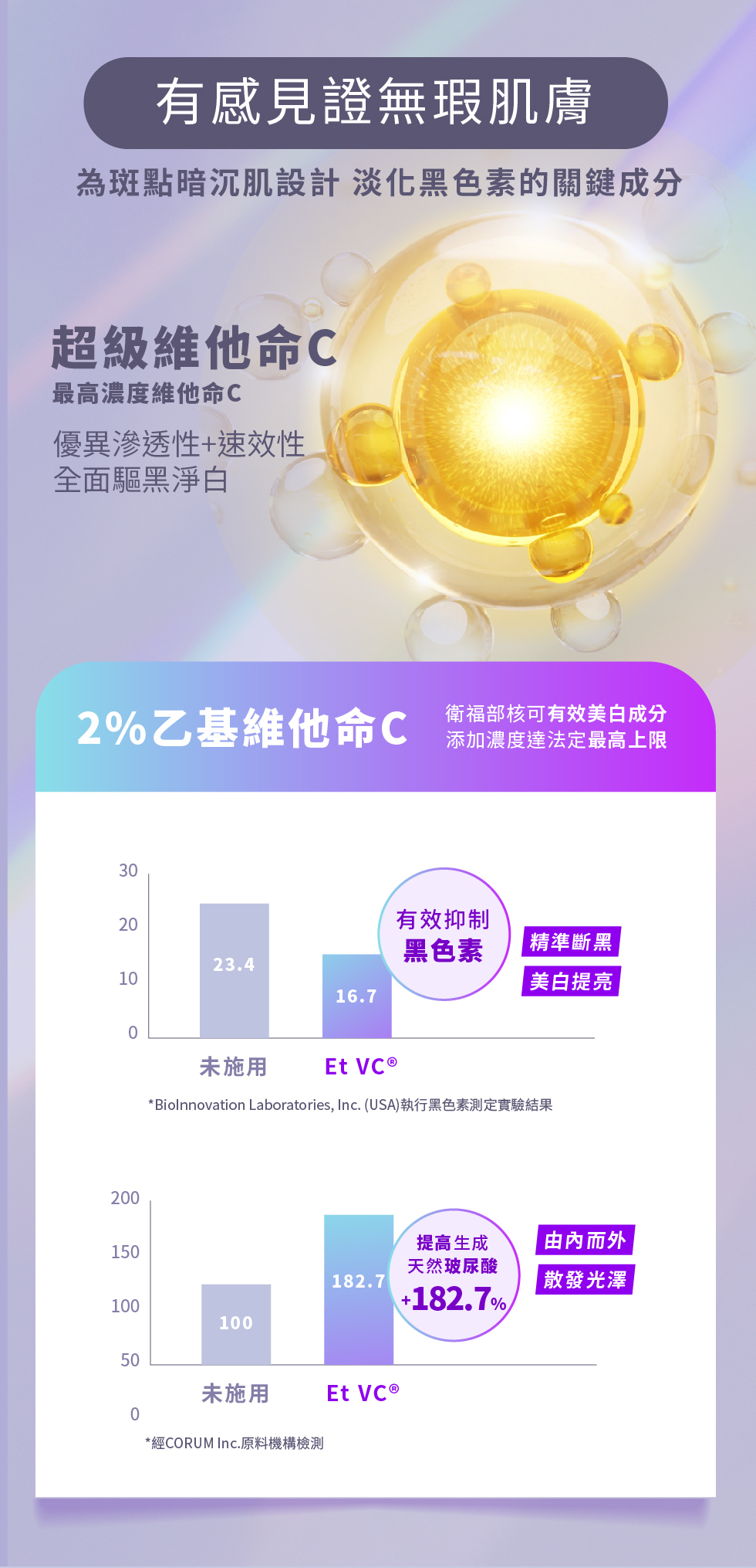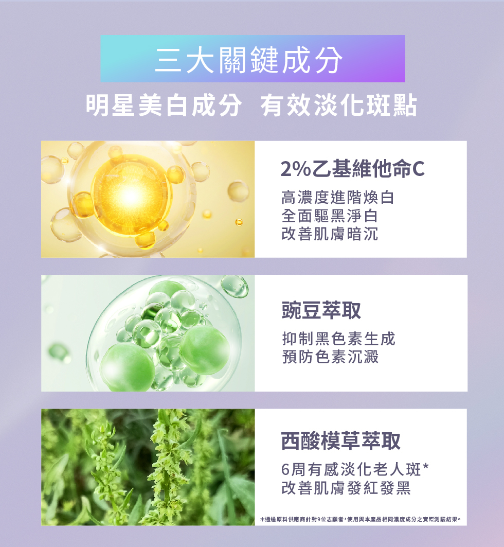 ●最高濃度2%乙基維他命C淨白成分,密集淡化色素沉著,打造無瑕雪白肌