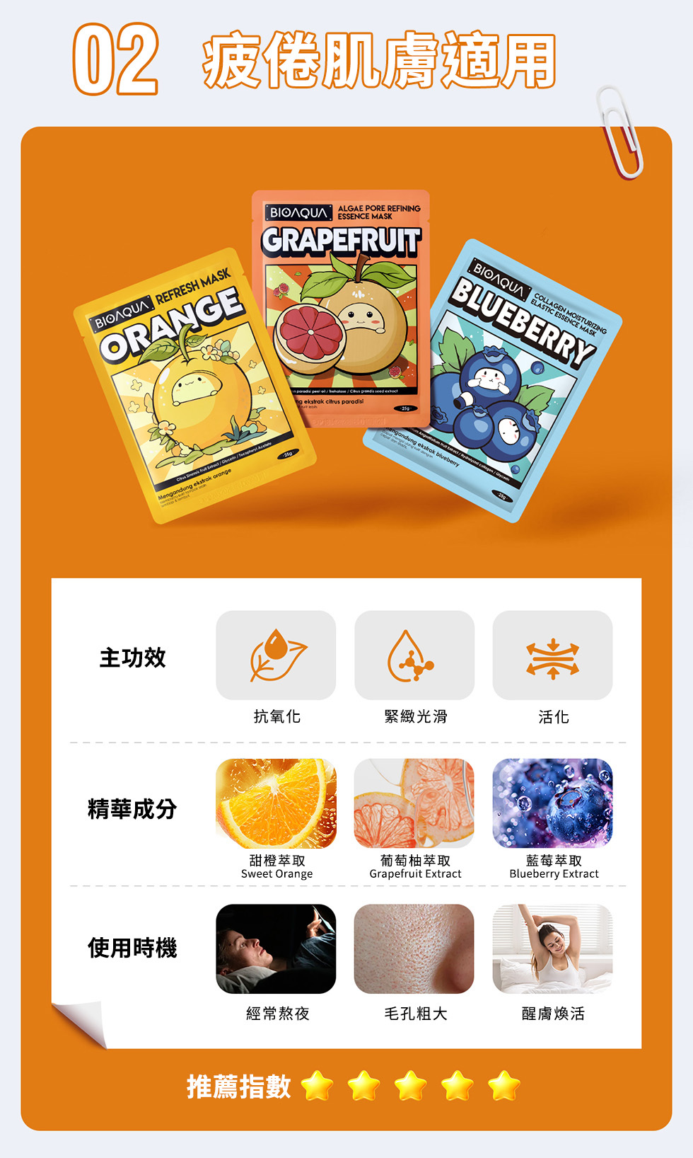 【葡萄柚毛孔緊緻光滑面膜】含葡萄柚萃取、矢車菊萃取,可提亮肌膚、減少毛孔堵塞,使肌膚光滑亮澤,適合混合油性肌膚。親膚透氣面膜布,360°貼合臉部肌膚,幫助精華滲透肌底。