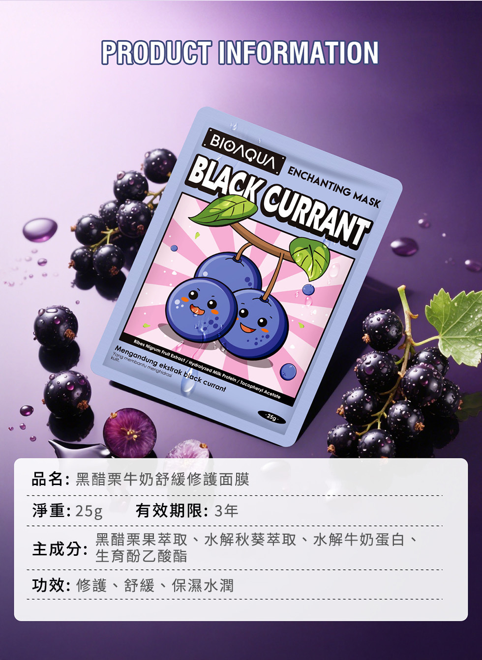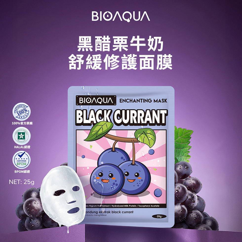|BIOAQUA 黑醋栗牛奶舒緩修護面膜|
