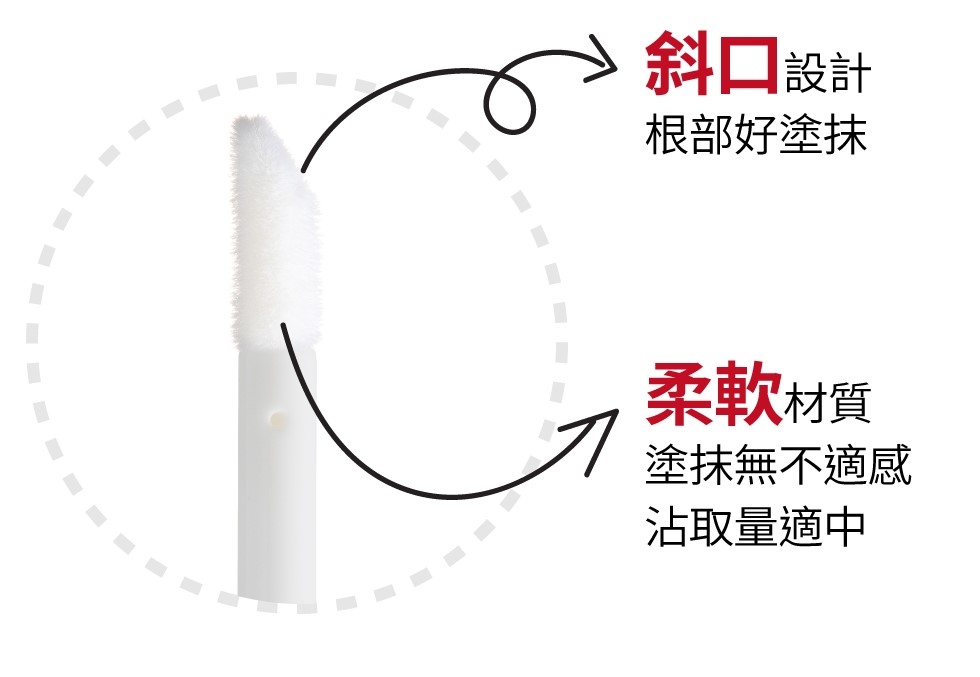 做成斜口設計更能確實將精華液沾附每根睫毛根部,減少對睫毛不必要的物理性摩擦。我眼睛是屬於有點敏感,但用這支完全不!會!薰!眼!