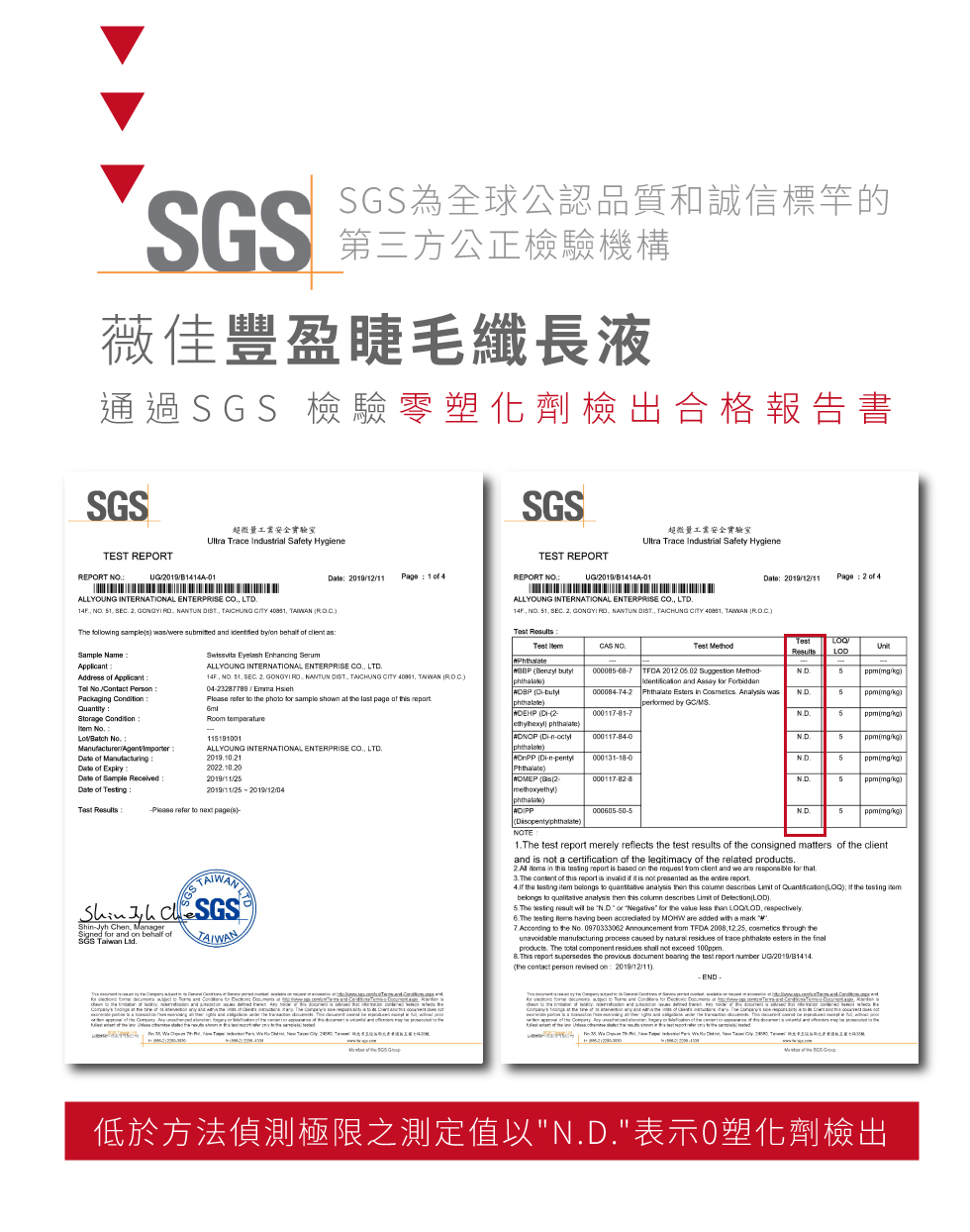 ▲全球通用的SGS檢測單位,成分安心。