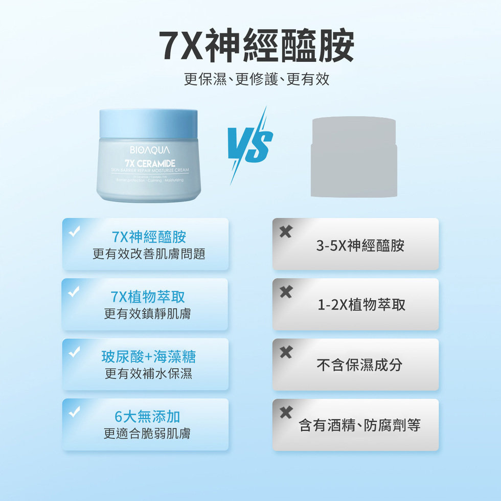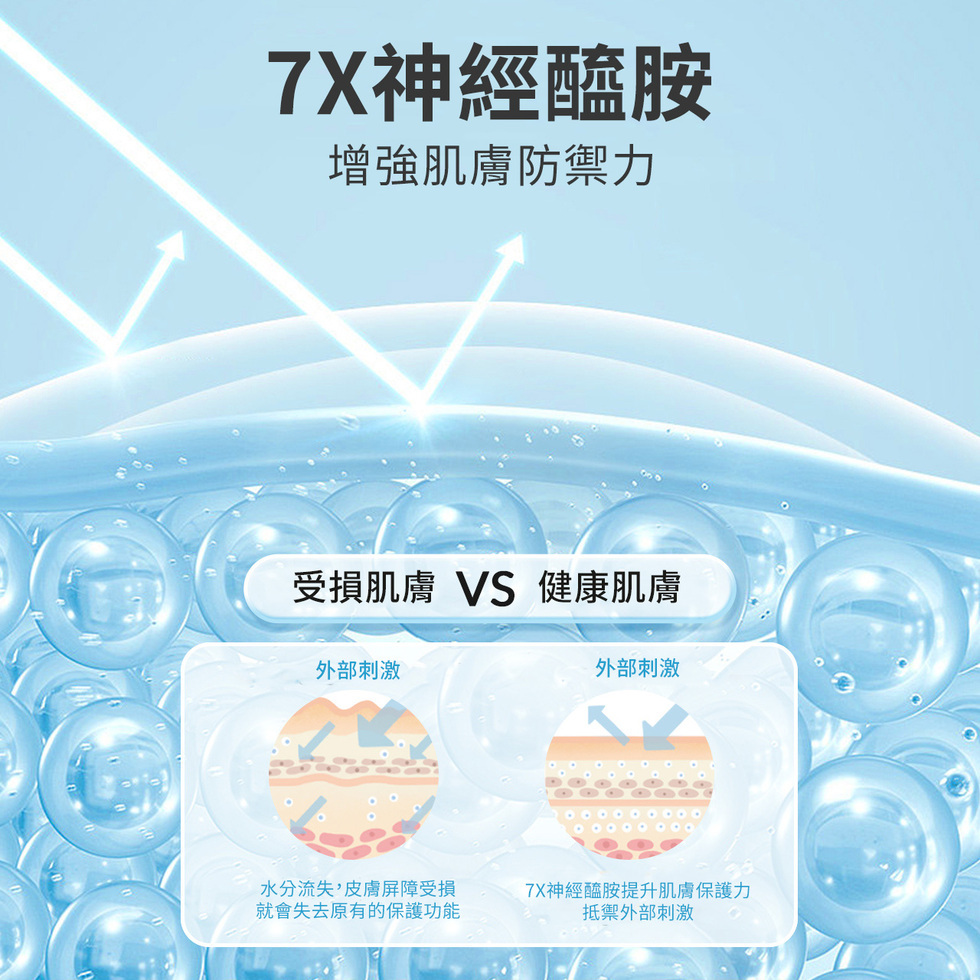 7X神經醯胺、積雪草、HA玻尿酸、海藻糖、植物萃取
