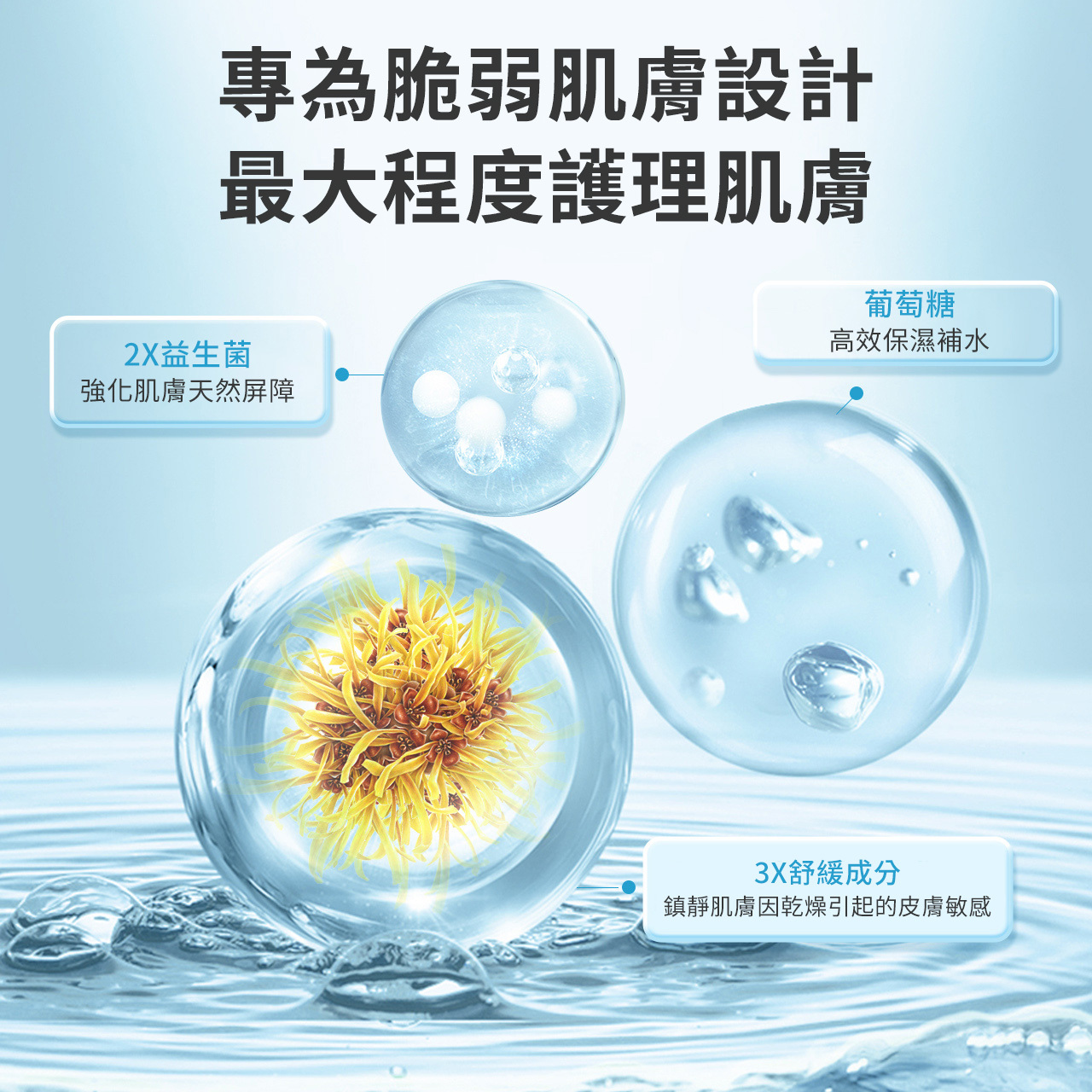 高效保濕潤澤肌膚,舒緩肌膚因乾燥引起不適、泛紅、脫皮,強化肌膚屏障,重現水潤光澤柔嫩肌。