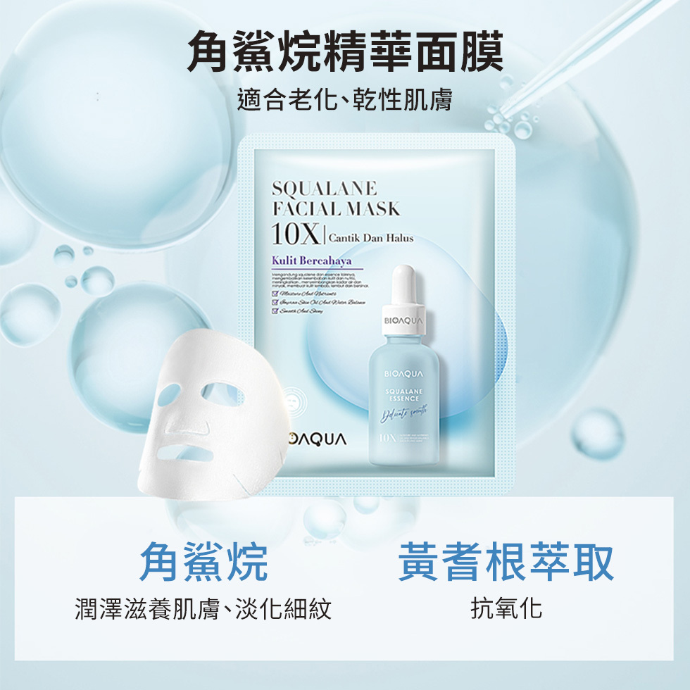 |角鲨烷精華面膜| 含角鯊烷、黃耆根萃取。保濕潤澤、滋養肌膚,撫平淡化細紋,幫助肌膚抗氧化。