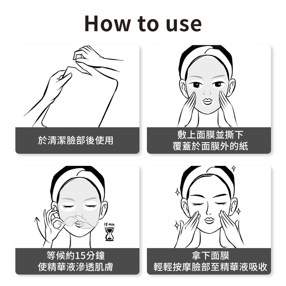 早晚於臉部清潔後,取適當化妝水於掌心或化妝棉,輕拍按壓於臉部肌膚 避開眼、唇部位,靜待臉部吸收即可。 |
