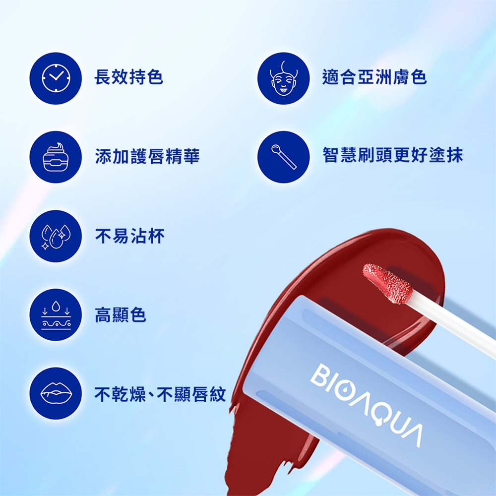 添加神經醯胺、橄欖油,護唇加持久光澤唇彩雙效合一!12小時超持色、不沾、不乾燥,智慧刷頭更好塗抹,打造自然水潤光澤雙唇。