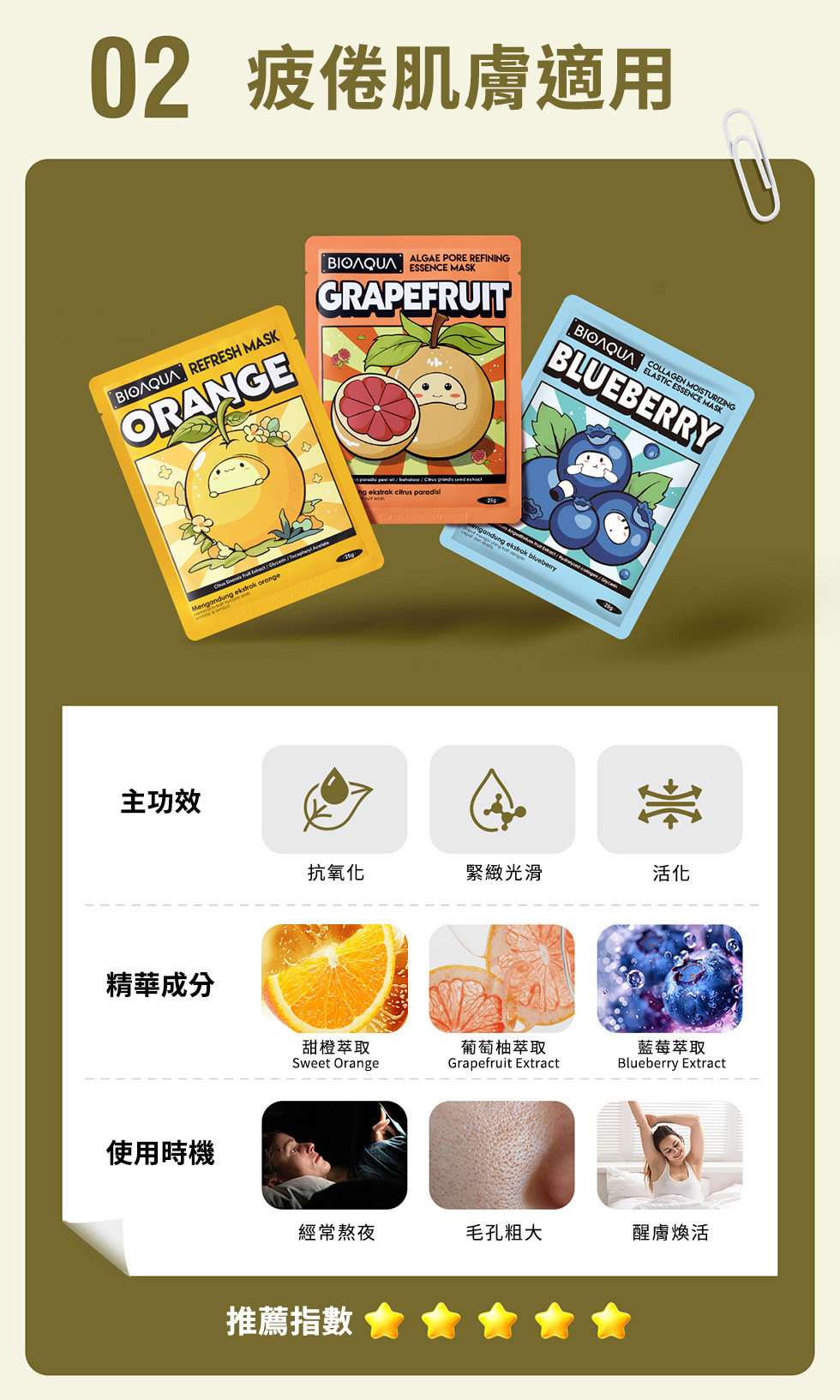 品名:甜橙維他命抗氧煥活面膜、奇異果維E補水保濕面膜