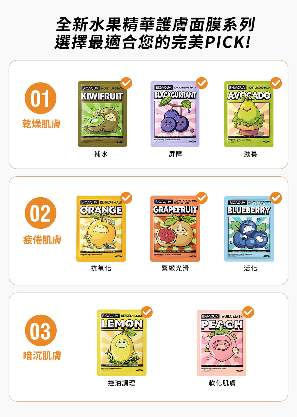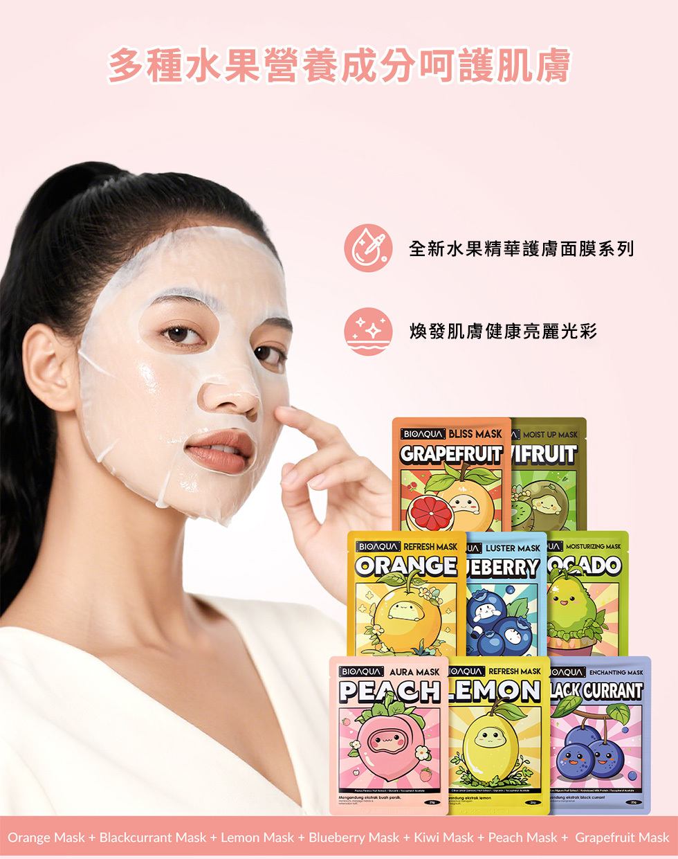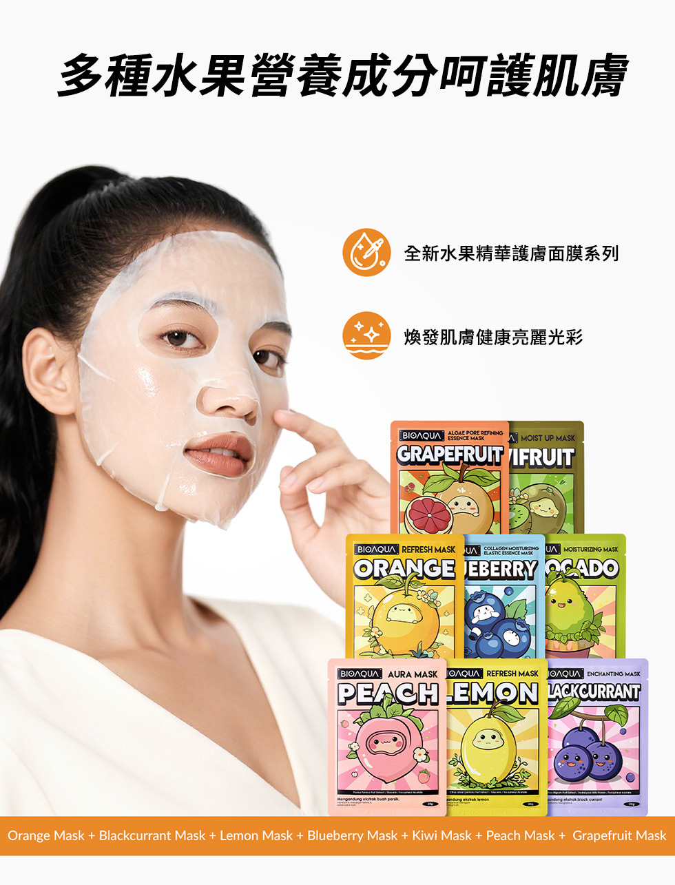 品名:水蜜桃萌顏晶透亮膚面膜、甜橙維他命抗氧煥活面膜