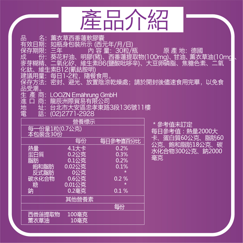 商品:薰衣草西番蓮軟膠囊(30粒/瓶) 德國原裝保健食品