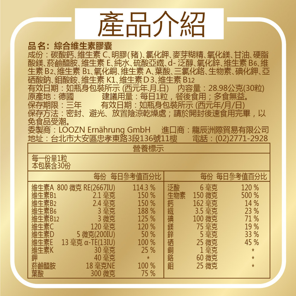 商品:綜合維生素膠囊(30粒/瓶) 德國原裝保健食品