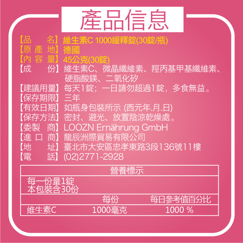 商品:維生素C 1000緩釋錠(30錠/瓶)*2