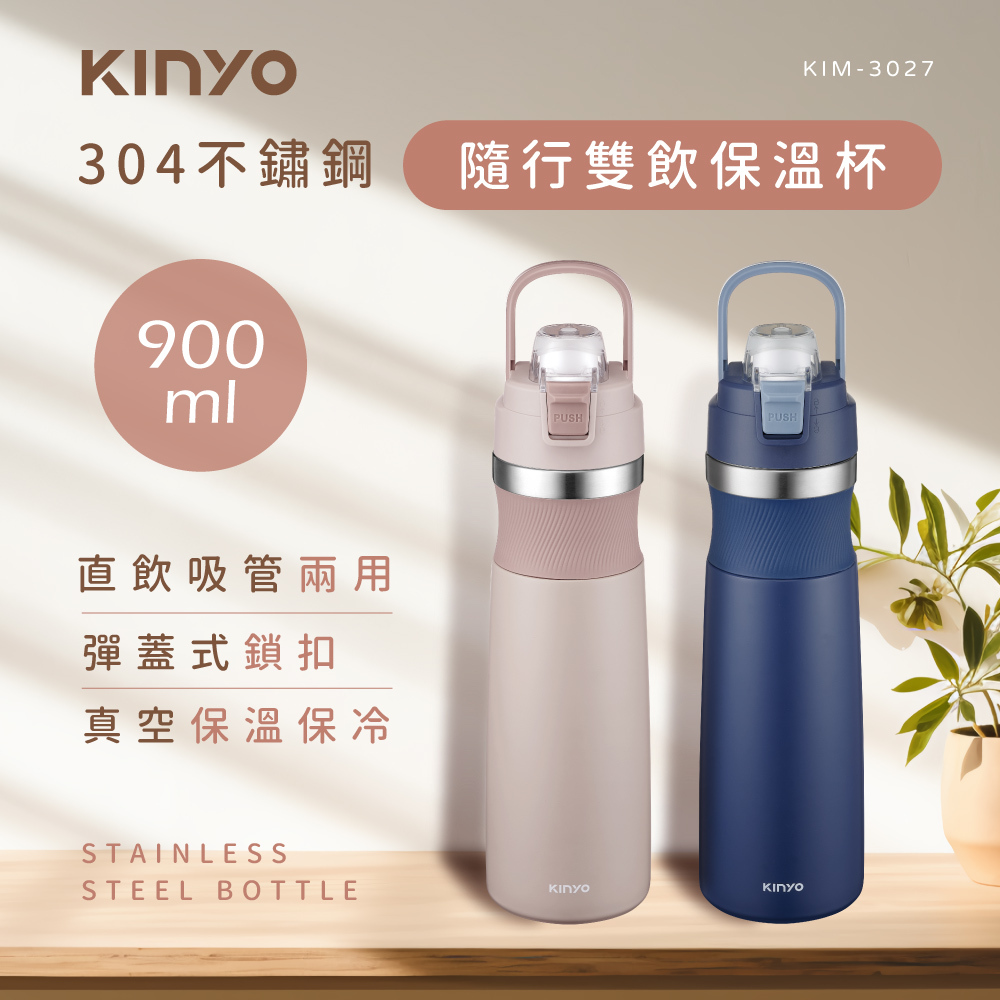 KINYO|不鏽鋼隨行雙飲保溫杯900ml KIM-3027