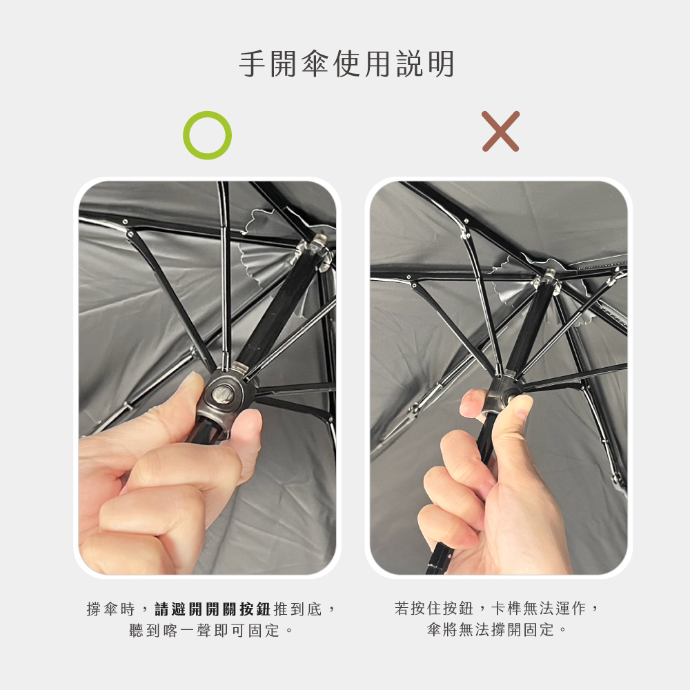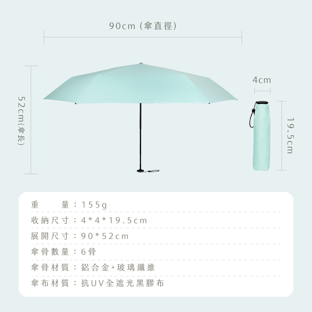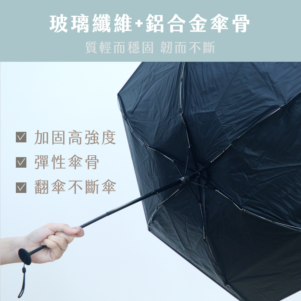 | 產品特色 | .防手夾開關 .傘骨防刮手 .抗紫外線黑膠傘布 .纖維傘骨穩固防風 .極輕巧收納便攜 |