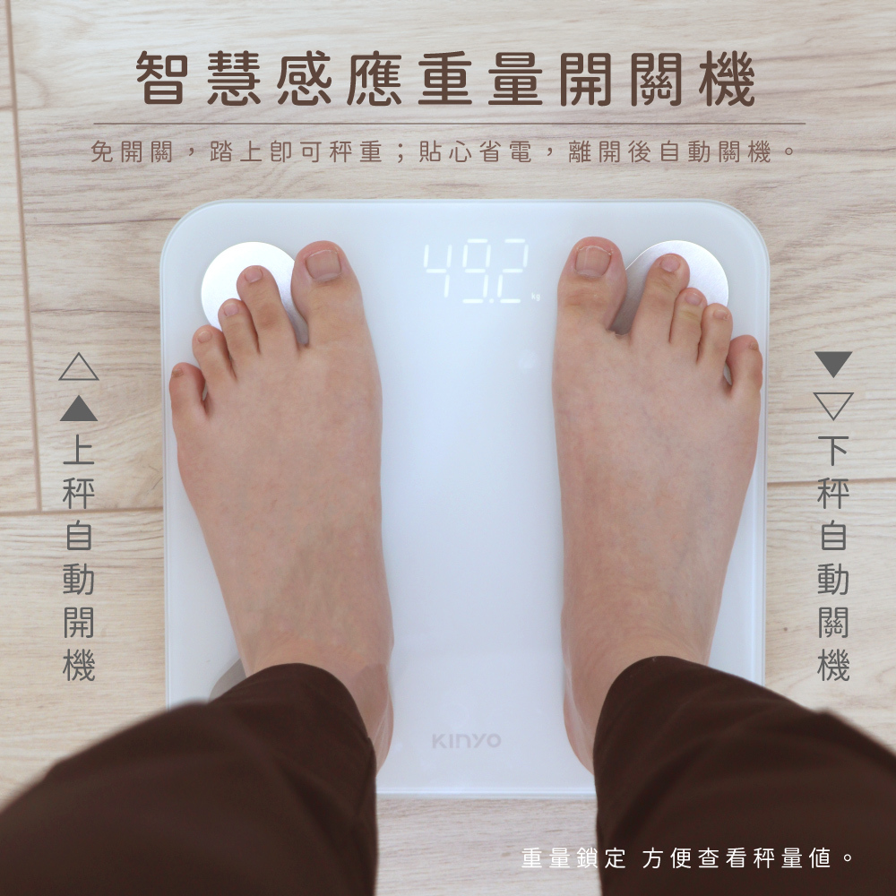 .免開關,踏上即可秤重;貼心省電,離開後自動關機。