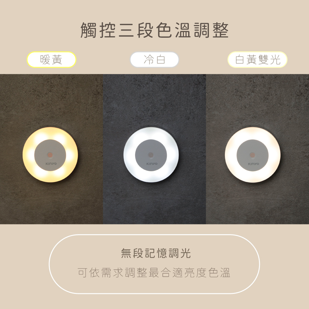 .觸控三段色溫調整:白光/黃光/白黃雙光。