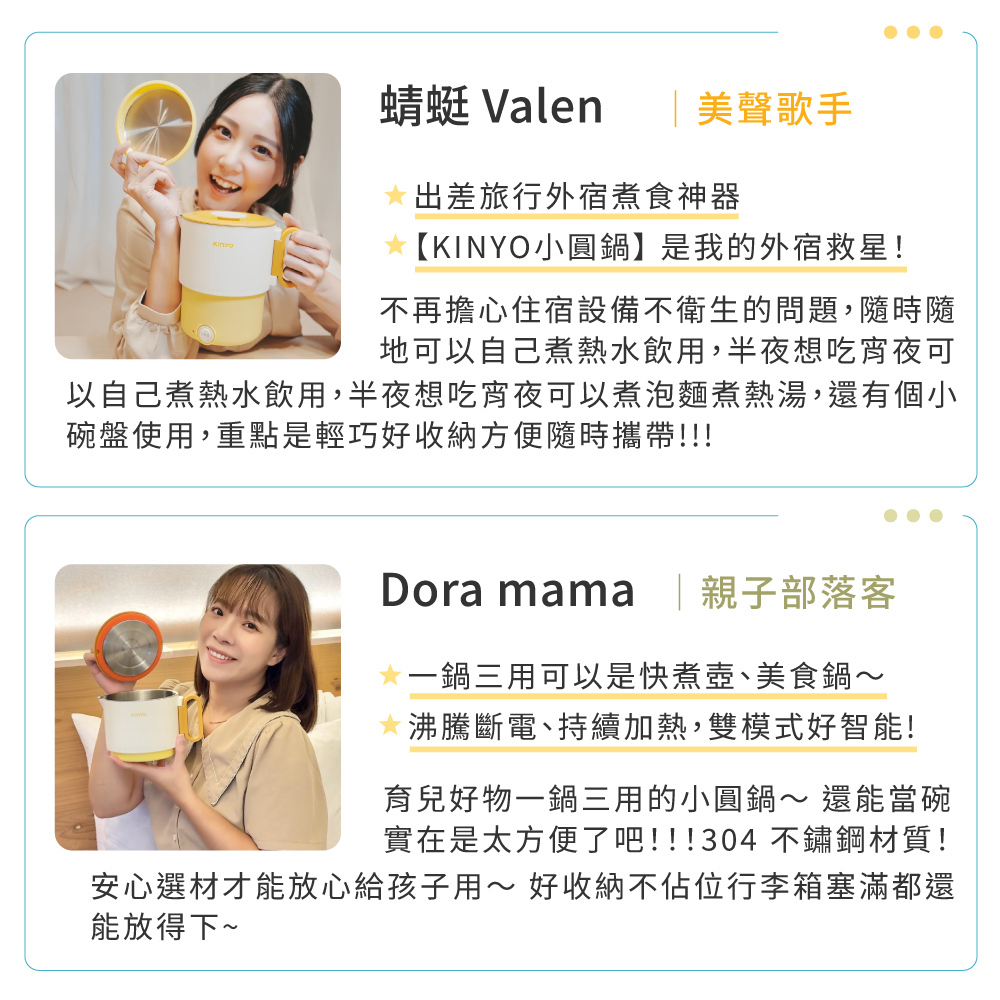 | 產品特色 | .雙電壓110V-220V快速切換,出國簡單享受異國美食 .304不鏽鋼材質,優異傳導、耐久用 .疊放設計,收納後體積超迷你,外出攜帶不占位 .12.5CM大口徑/12CM深度烹煮,清洗便利順手 .鍋底可拆式食物碟,一鍋到底烹煮完成立即食用 .附旅行收納袋,一袋全打包 ,鍋緣倒水口,便利倒水、倒湯,節省時間又方便 .可折疊手柄舒適好握,收納不估空間 .0.9L精巧容量,個人獨享、雙人分享皆適用 .麵食/水餃/食材川燙,美味隨心選 |
