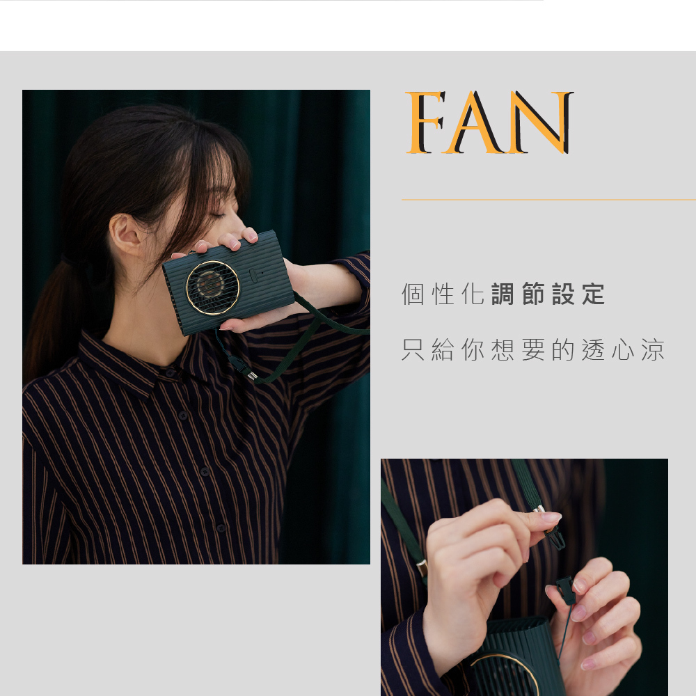 | 產品特色 | .向上送風,集中風力更勁涼 .29片雙渦輪葉扇,長髮配戴不捲頭髮 .折疊支架設計,放置桌面呈30度最佳吹風角度 .三檔位風速,隨心所欲調整風量 .USB直充雙電池,大容量2000mAh電池,超長續航7小時 .附贈頸掛繩,超輕量解放雙手掛脖無負擔 |