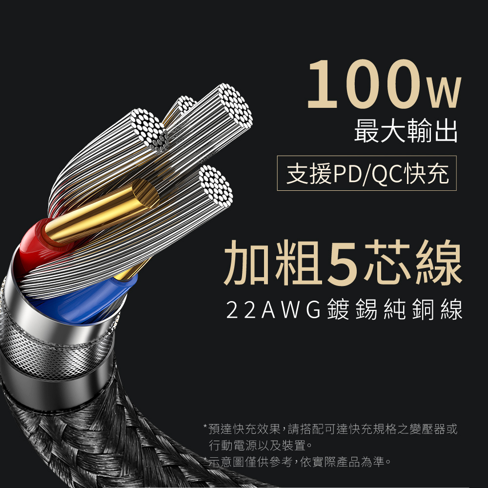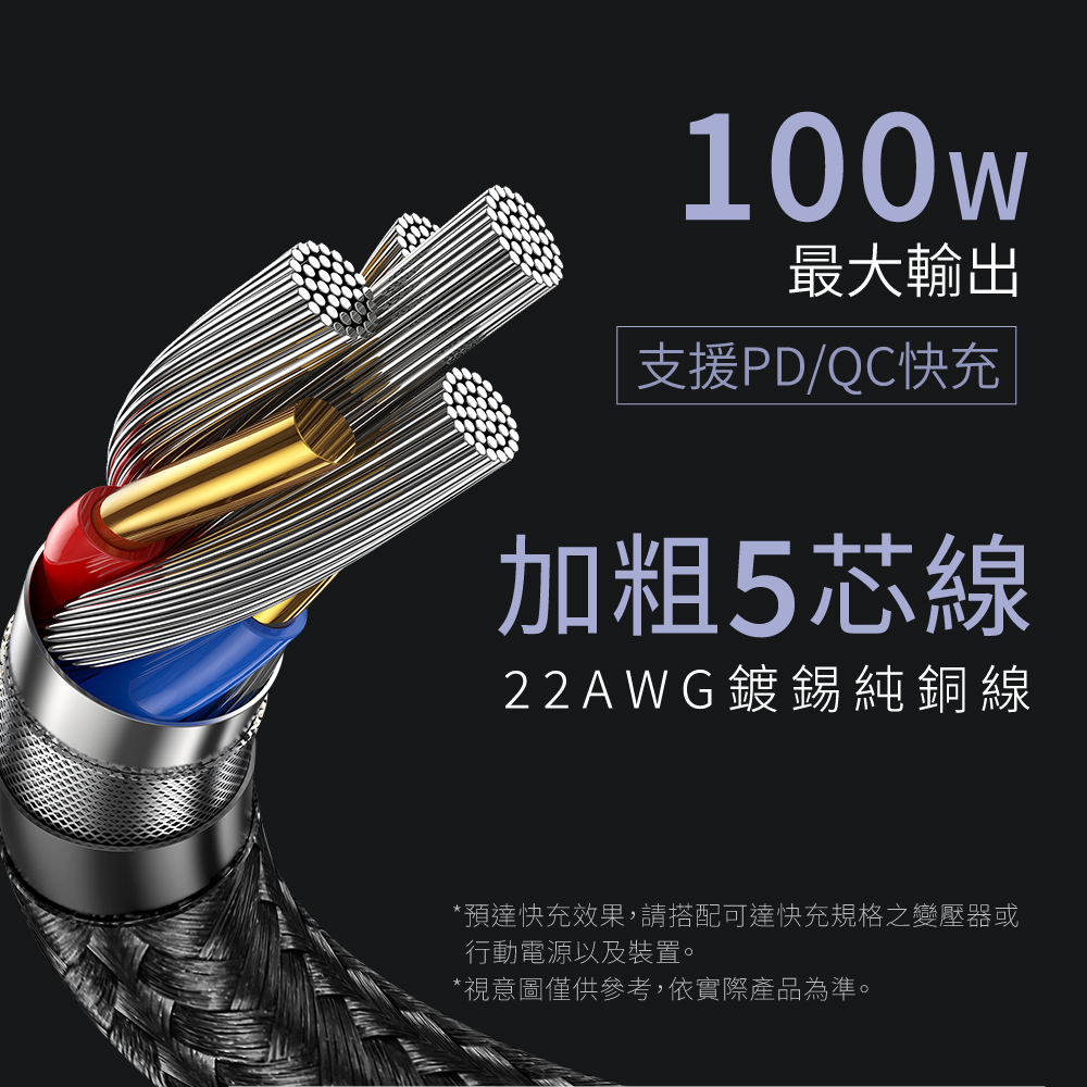 .支援100W大電流供電,適用各式充電設備。