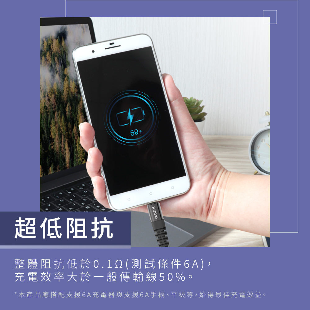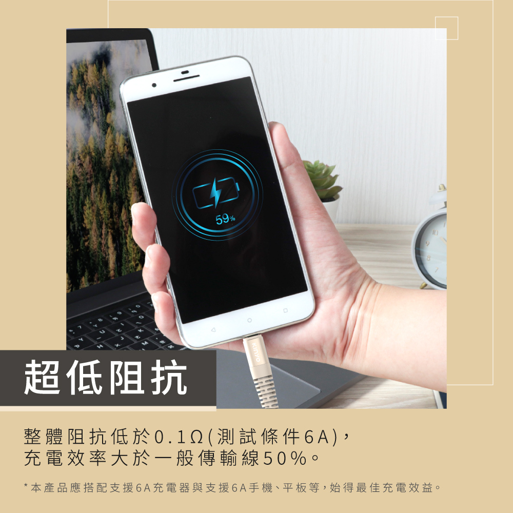 .超低阻抗!整體阻抗低於0.1Ω(測試條件6A),充電效率大 於一般傳輸線50%。