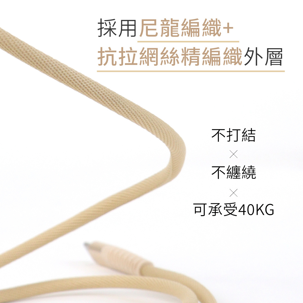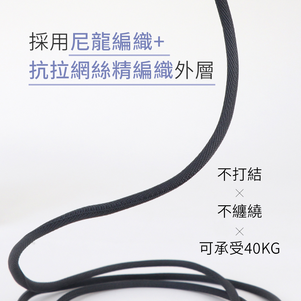 .採用尼龍編織加上抗拉網絲精編織外層,不打結不纏繞, 可承受40KG不斷。