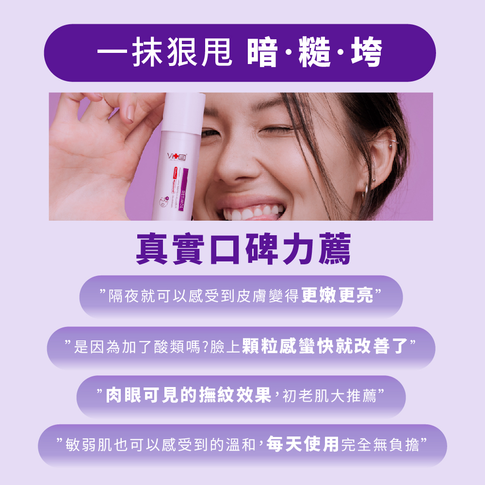 ●超時空A醇 x 蜜花酸晶雙重能量,肌膚全面煥顏