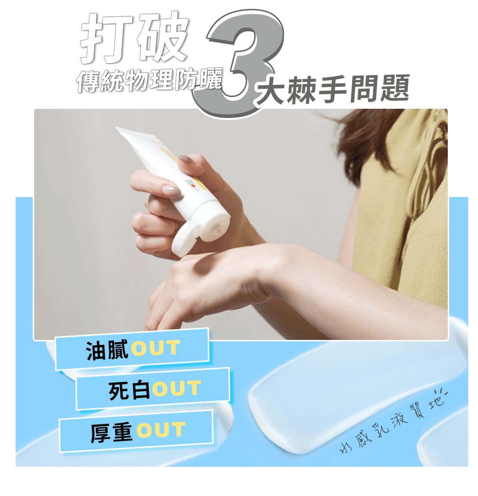 ●極清爽!獨特防曬微粒技術,更好推勻、絕不黏膩,一抹無殘留感、不泛白