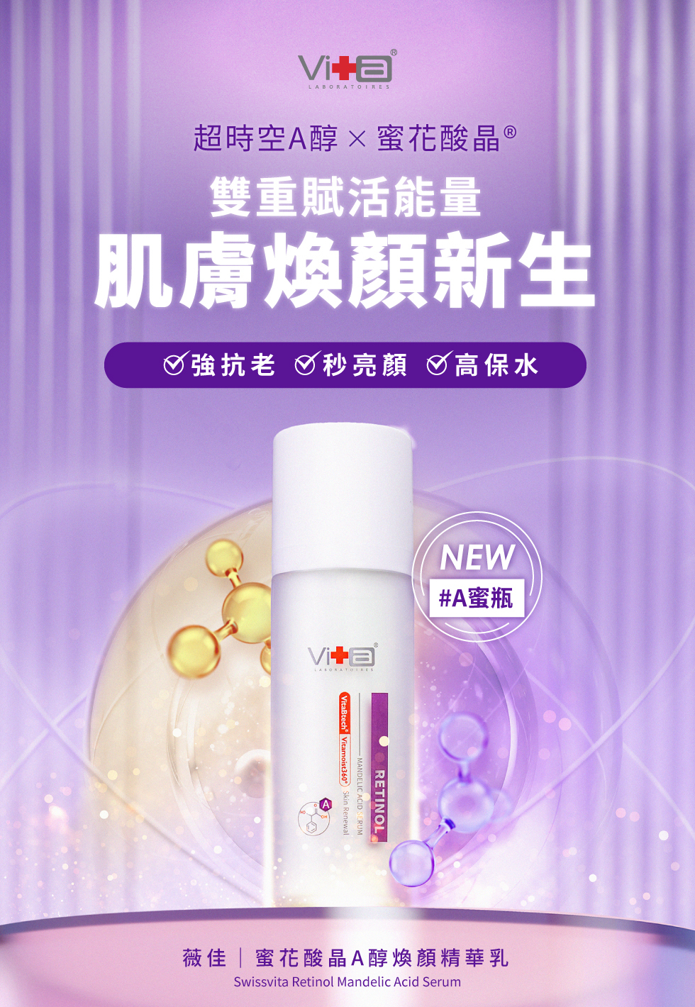 ●超時空A醇 x 蜜花酸晶®雙重賦活能量,革命性1A3酸配方,肌膚全面煥顏+煥亮