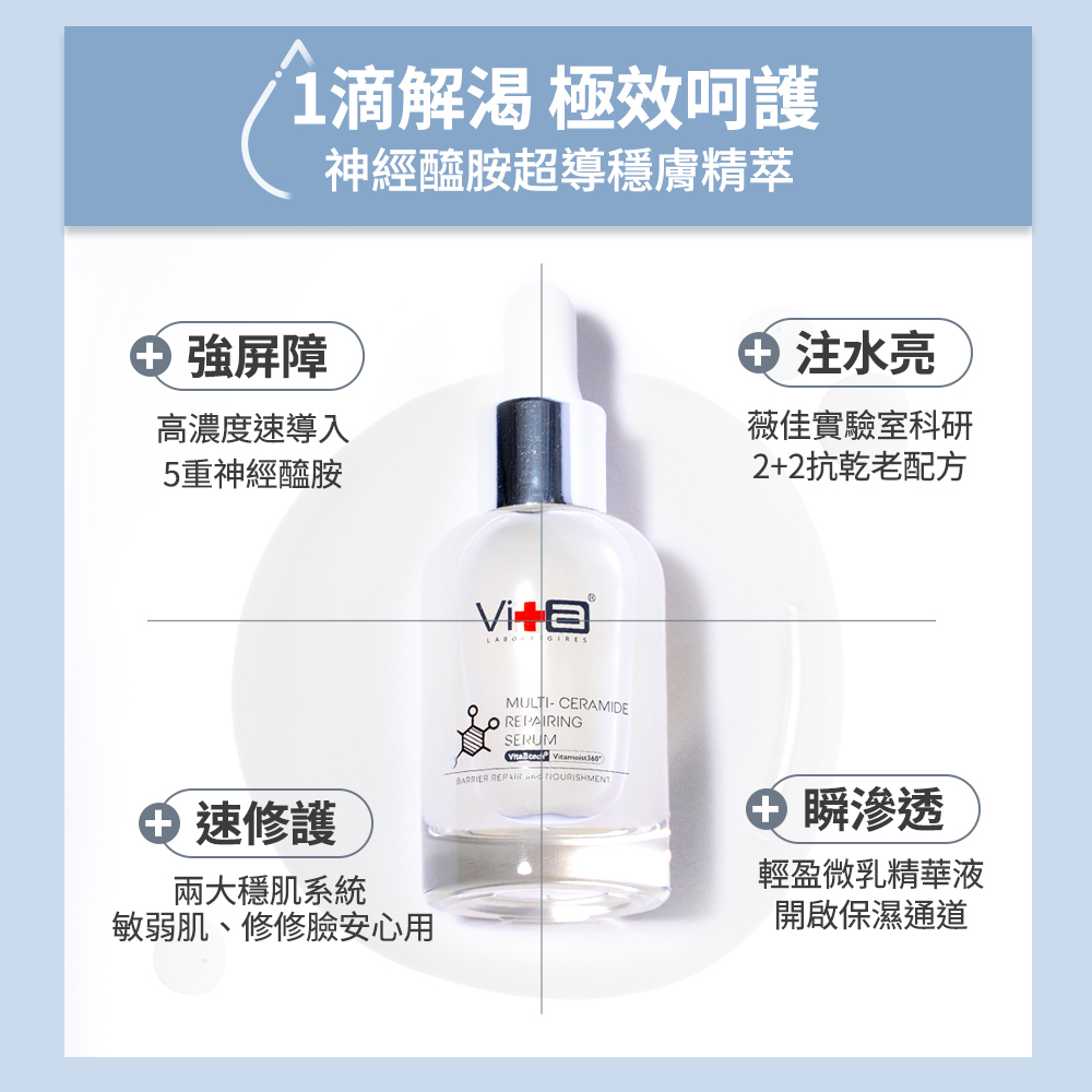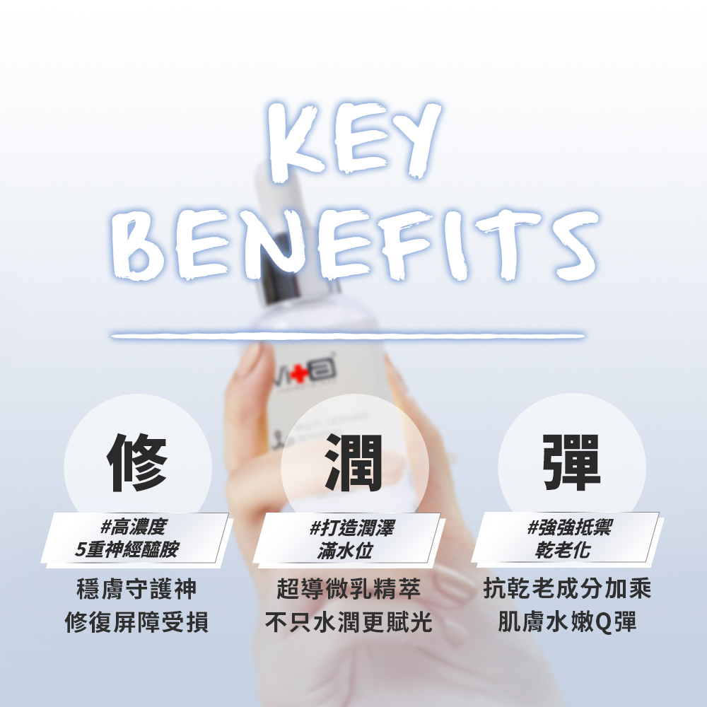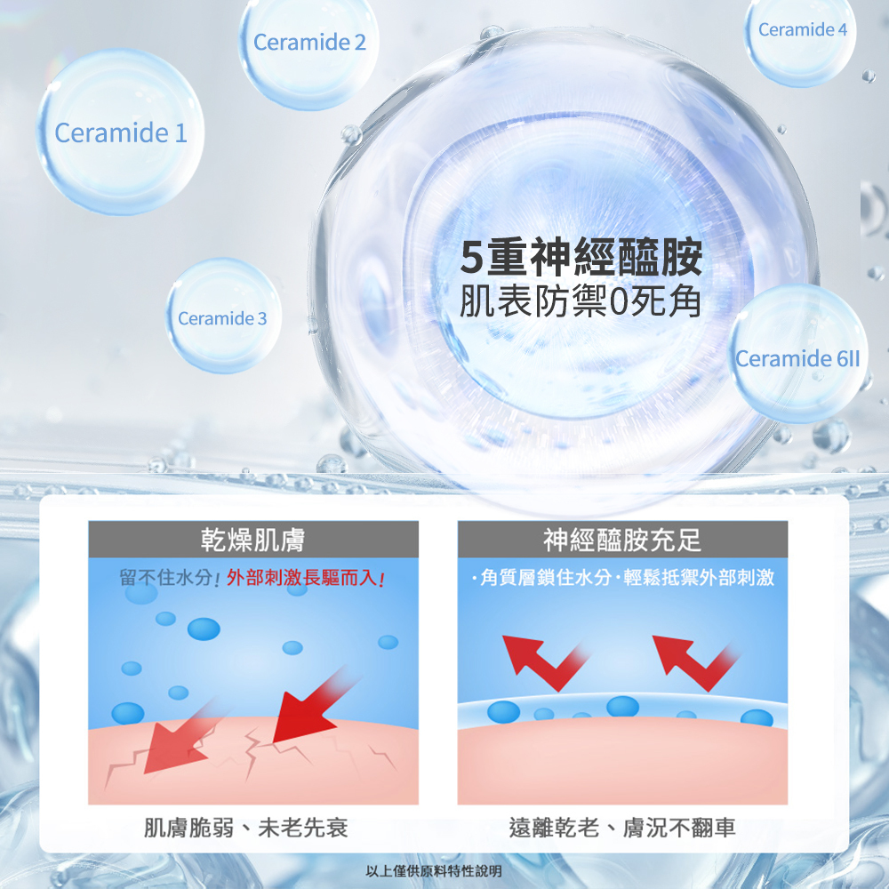 ●3%高濃度「保水之王」神經醯胺,滴滴極效!