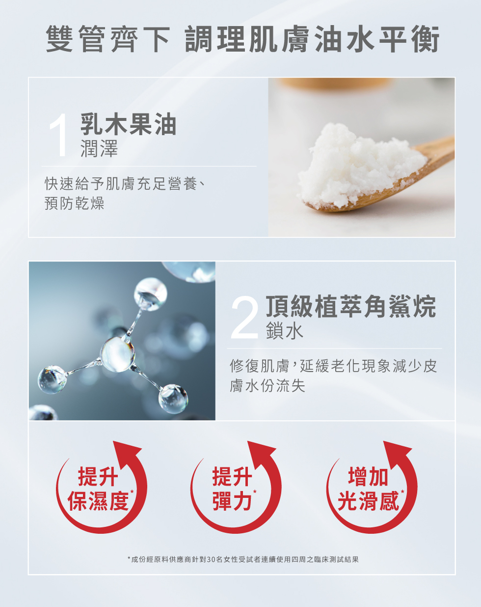 ●乳木果油快速潤澤;神經醯胺提升肌膚屏障